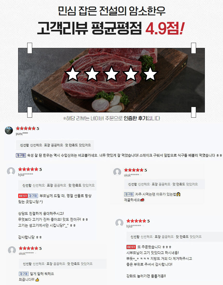 | 원산지 / 등급 | 100% 국내산 암소한우 /1등급 |