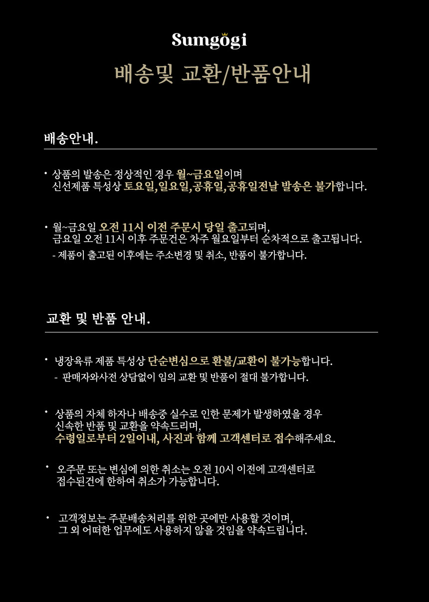 - 단순 변심으로 인한 환불은 신선식품의 특성상 불가 합니다. 구매 전 꼼꼼히 살피신 후 구매 부탁드립니다.